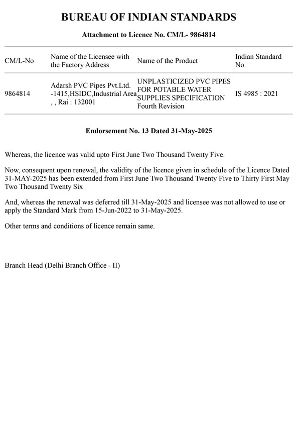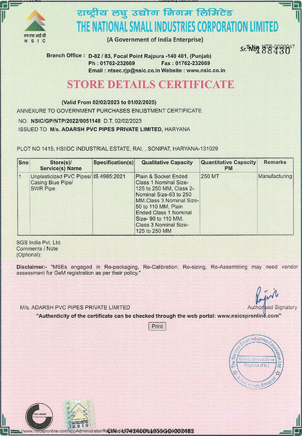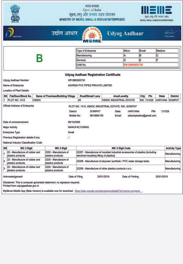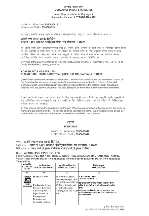 ADARSH PVC PIPES PVT. LTD.